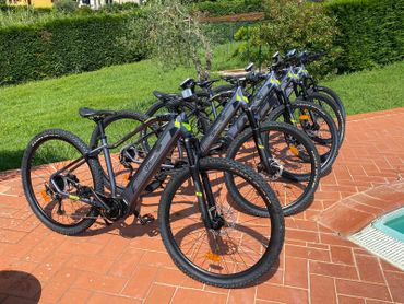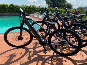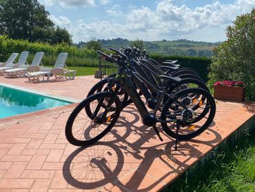 To our guests, lovers of cycle tourism, we offer the pedal-assisted bike rental service with 5 new 29" MTBs, to be able to explore the Chianti region in total autonomy. Our area is famous for its enchanting views, its rolling hills, for the vineyards and olive groves and for the picturesque medieval villages.